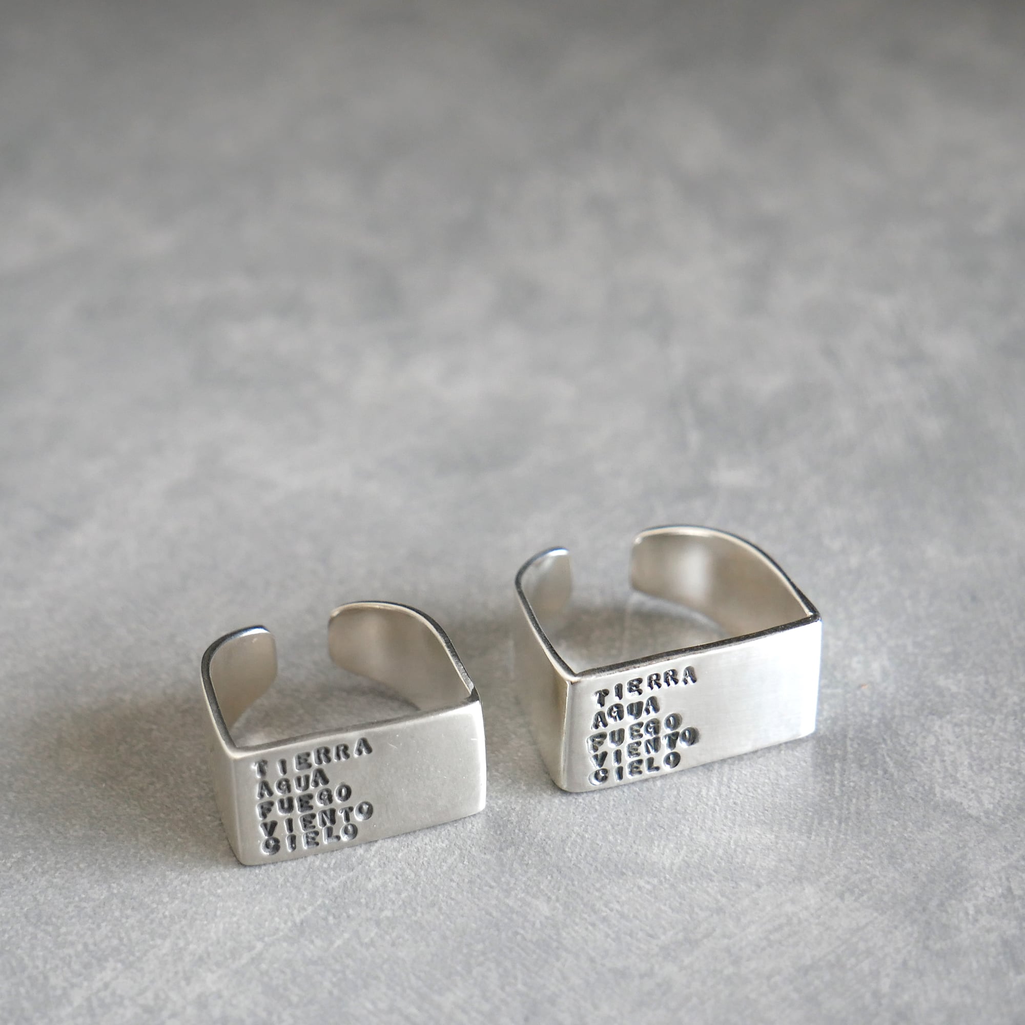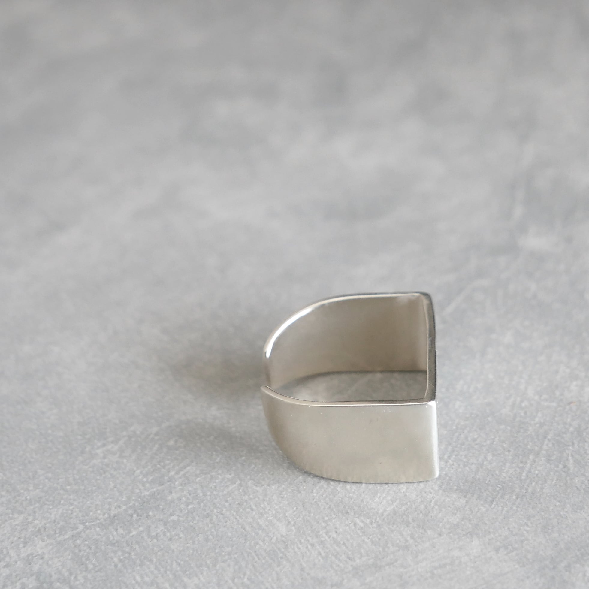 ボリューミーなスクエアデザインのリングは表面をマットめに仕上げてよりクールな印象に。