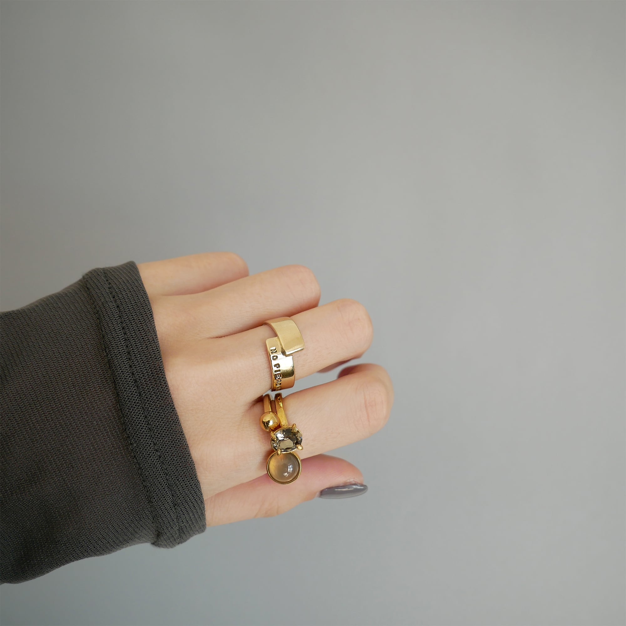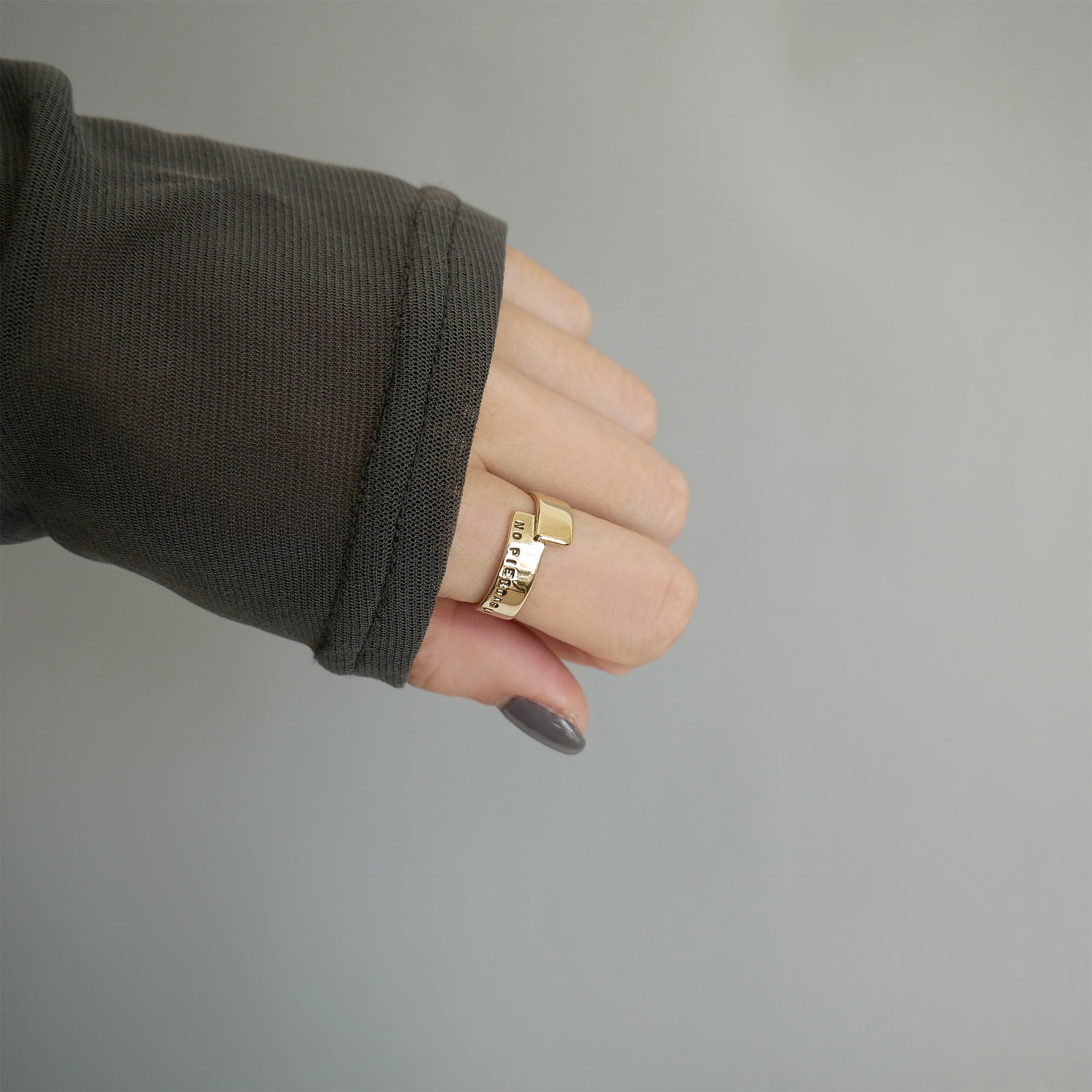 幅感はありつつも主張しすぎず、細めの指の方や幅広リングが初めての方にも取り入れやすいデザインです。