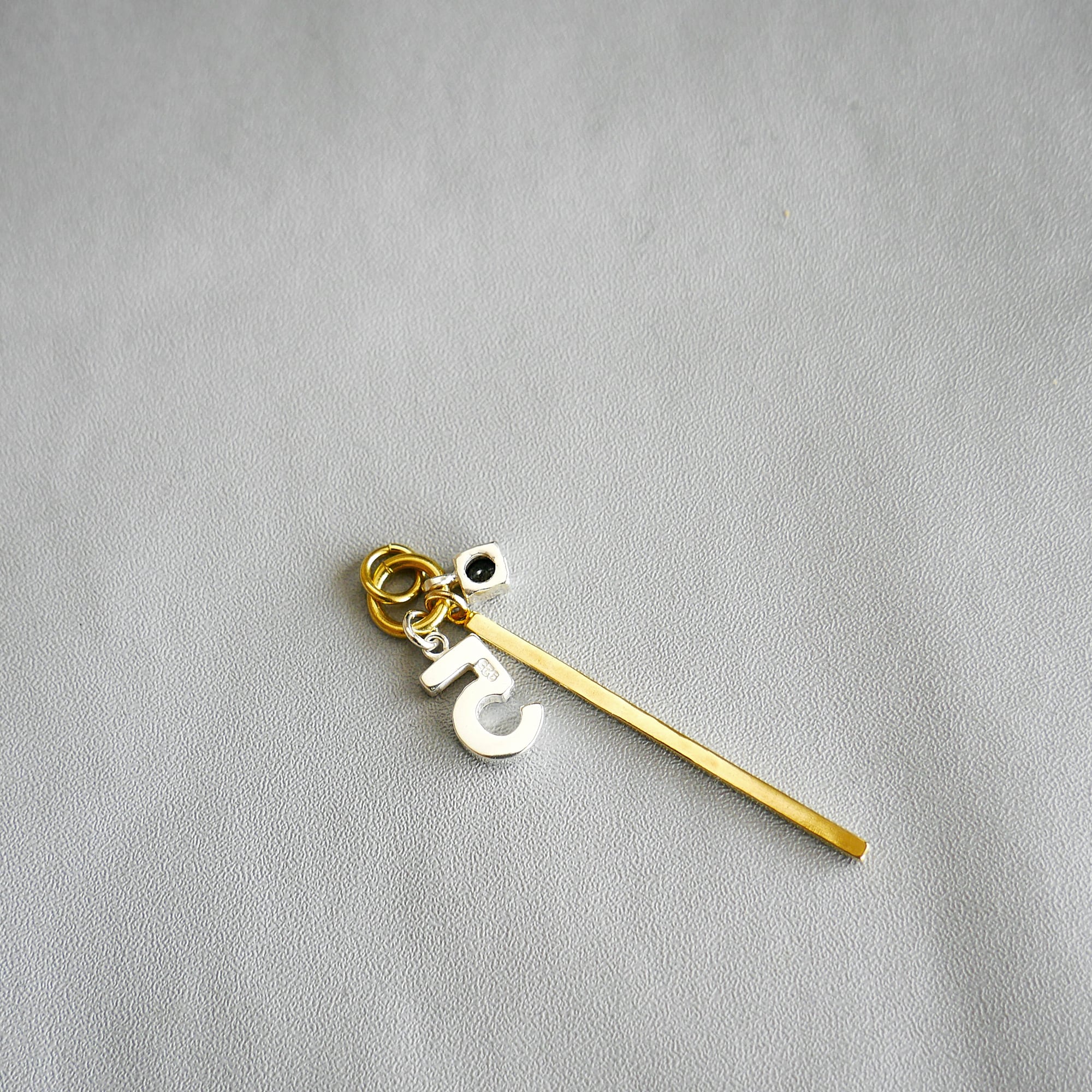 こちらは2種類の金具が付いている仕様で通す位置によってネックレスチャーム、イヤカフ用のチャームと2WAYでお使い頂ける便利なチャームです。