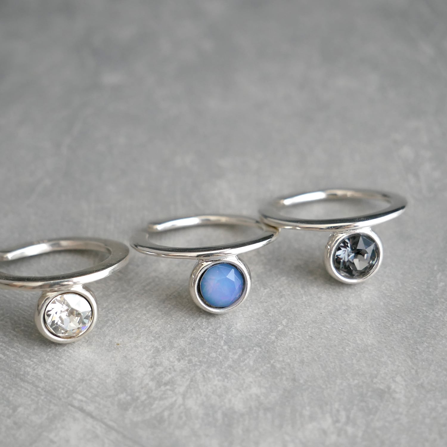 石座部分がベースの上に来ることでストーンの存在感が増します。ピアスなどとの重ね付けも◎